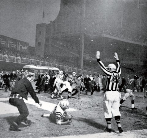 Alan Ameche scores winning touchdown as the Colts defeat the Giants in the 1958 NFL Championship game.