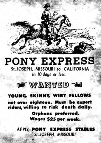 PONY EXPRESS INTRODUCES MAIL SERVICE TO THE WEST