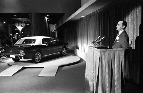 Lee Iacocca at the Inaugural launch of the 1964 Mustang