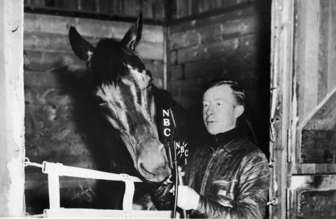 On November 1,1938, at the Pimlico Race Course Seabiscuit met War Admiral in The Match of the Century. Trains were run from all over the country to bring fans to the race, and the estimated 40,000 fans at the track were joined by some 40 million listening on the radio. War Admiral was the prohibitive favorite. When the bell rang, Seabiscuit ran away from the Triple Crown champion. Halfway down the backstretch, War Admiral started to cut into the lead, gradually pulling even with Seabiscuit, but two hundred yards from the finish line, Seabiscuit pulled away, winning by four lengths.