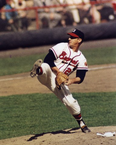 Warren Spahn played all but one of his 21 season career with the Boston/Milwaukee Braves, winning at least 20 games in 13 of those seasons. He won a total of 363 games in his career, the most ever for a left-handed pitcher. Spahn won the Cy Young Award in 1957 when he was 21-11, which was the 2nd of a streak of six consecutive remarkably consistent seasons in which he won 20 to 22 games. But perhaps his most memorable season was when he won 23 games with an ERA of 2.60 at 42 years of age in 1963. Warren Spahn was elected to the Hall of Fame in 1973.