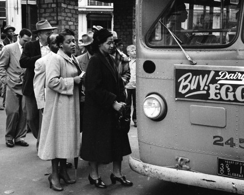 Rosa Parks refusal to make room for a white passenger on a city bus in Montgomery, Alabama in December of 1955 sparked the Montgomery Bus Boycott. This one brave act made great strides towards the end of racial segregation and the Civil Rights Movement. The boycott lasted 381 days and ended segregation on buses.