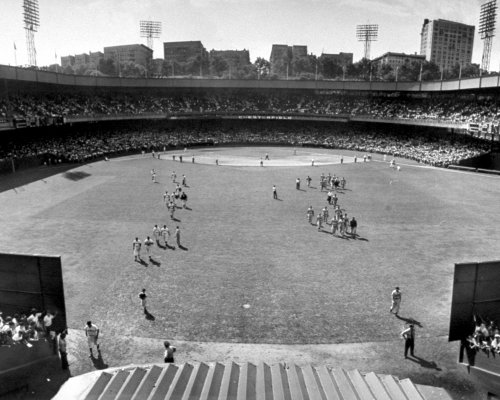 Polo Grounds I was originally built in 1883 and, after many modifications, was named Polo Grounds IV in 1911. The Giants played there until moving west in 1957. The horseshoe shape had the left and right field walls less than 300 feet and the centerfield wall was almost 500 feet. The bullpens were in fair territory in left and right center. The New York Mets played there in 1962-1963.